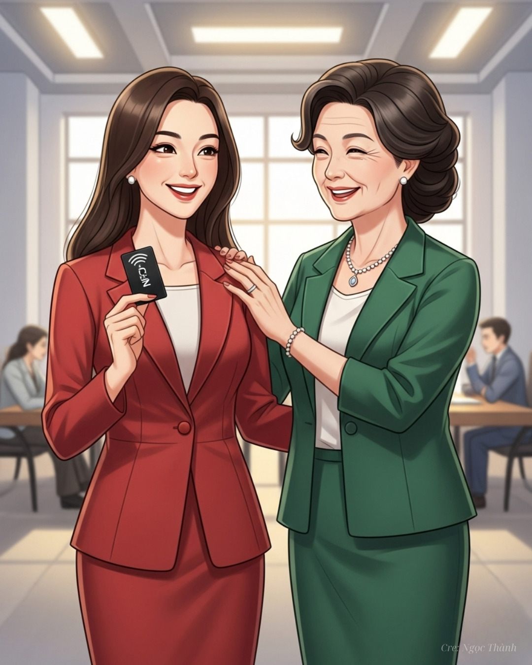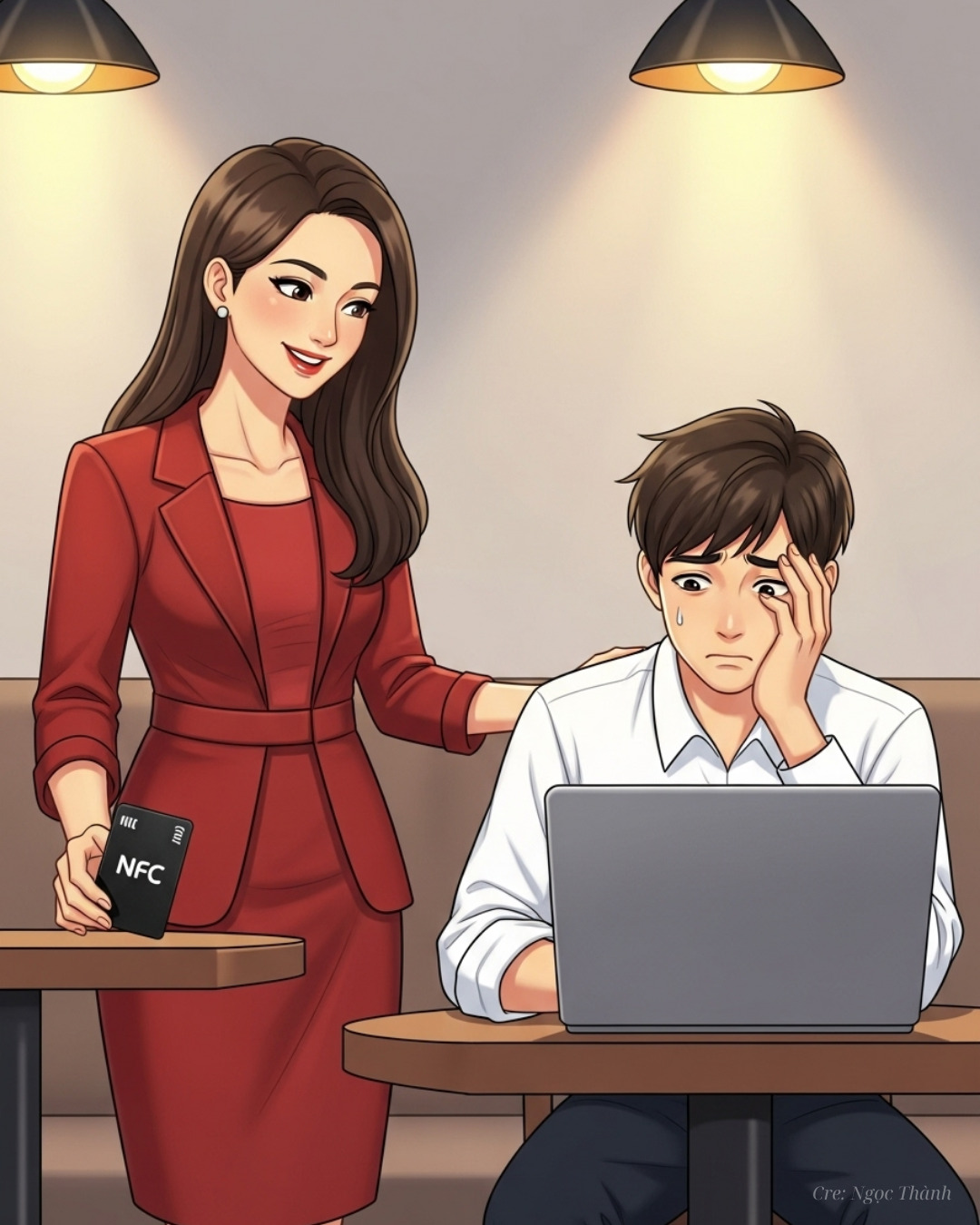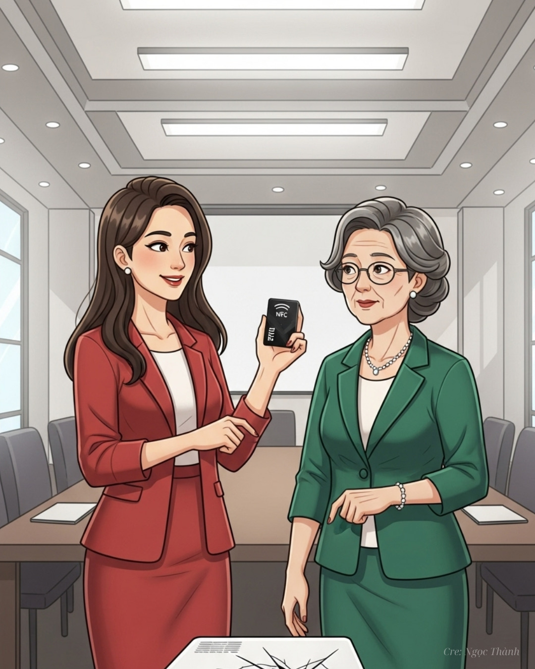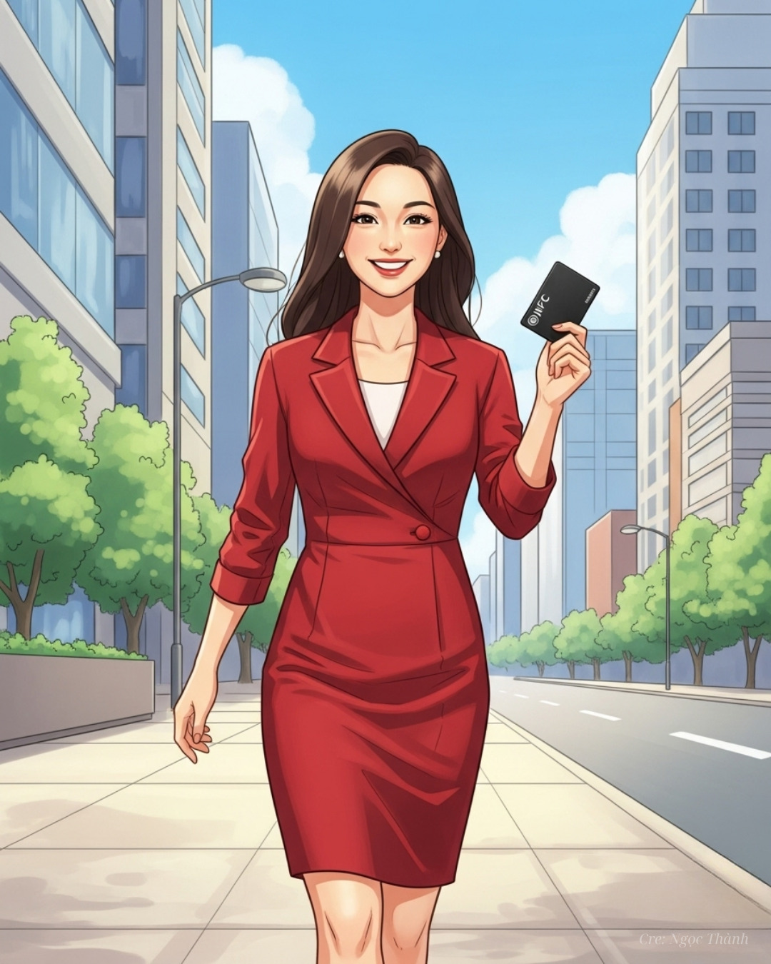 Linh, một chuyên gia công nghệ giàu kinh nghiệm, đang trên đường đến một cuộc họp quan trọng với khách hàng chiến lược. Trên tay cô là chiếc thẻ thông tin cá nhân NFC lấp lánh, kết nối trực tiếp với Hệ thống NCV hiện đại. Với sự tự tin và năng lượng tích cực, Linh tin rằng công cụ nhỏ bé này không chỉ là danh thiếp thông minh, mà còn là “chìa khóa” giúp cô trở thành một người chuyên nghiệp và hiệu quả nhất trong mọi tình huống.