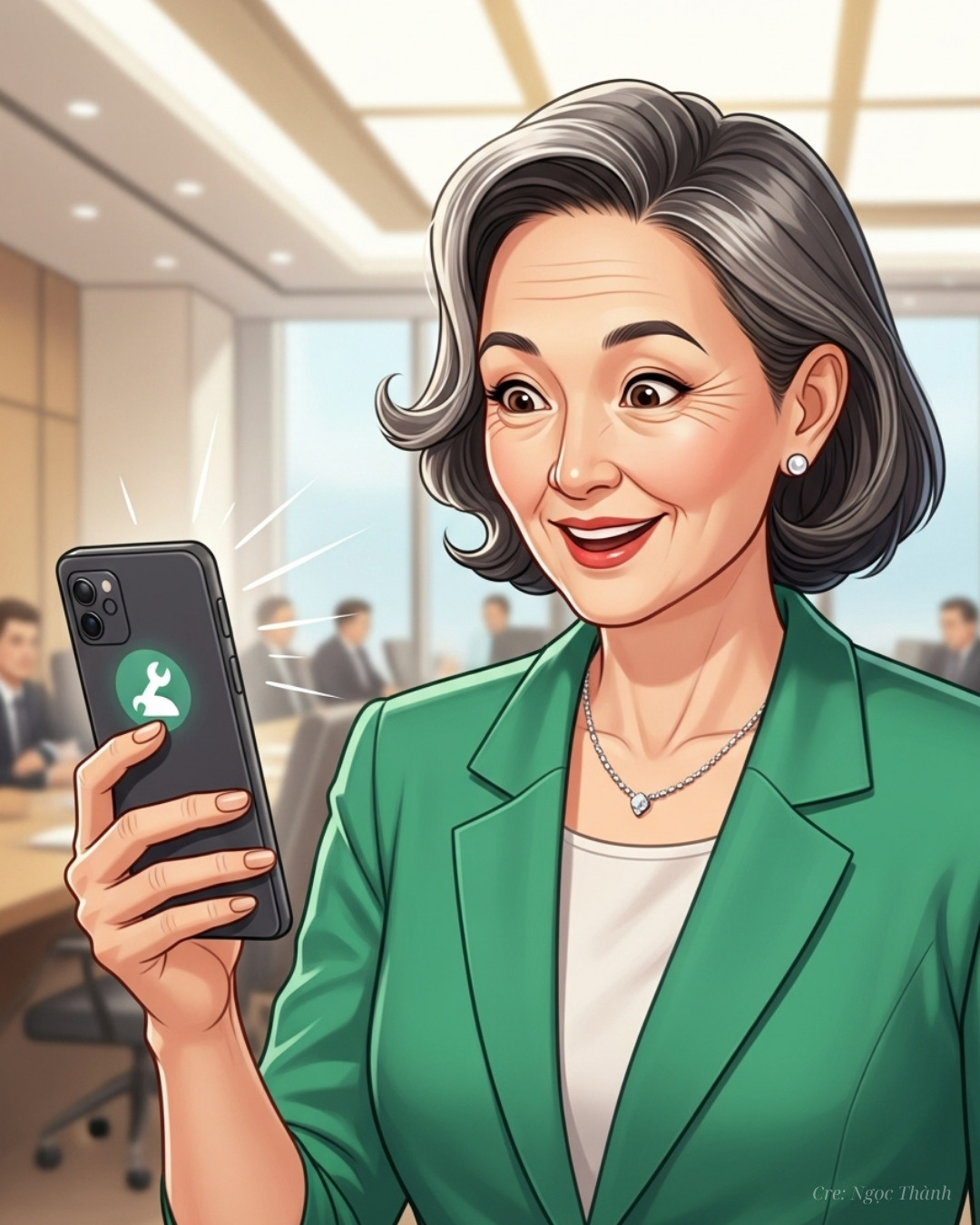 Cuối cùng, Linh cũng đến được phòng họp chính. Cô Mai, CEO công ty, đang chuẩn bị thuyết trình trước ban lãnh đạo thì bất ngờ máy chiếu bị hỏng. Cả phòng họp tràn ngập sự căng thẳng và lo lắng.