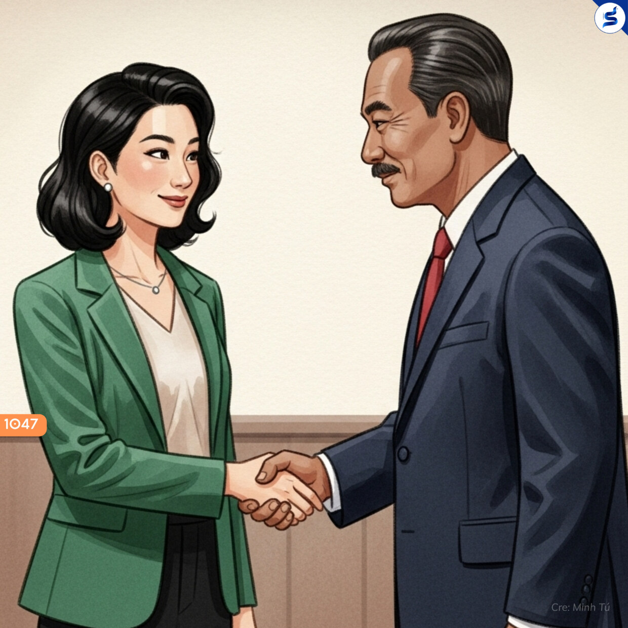 Mai Chi không nói lời nào về tài liệu. Cô chỉ nhẹ nhàng tiến lên, mỉm cười và nói: Thưa ông Thành, để tối ưu hóa thời gian của ông, tôi xin được trao đổi giải pháp thay vì thông tin cơ bản. Cô từ từ rút ra và đưa chiếc Danh Thiếp Thông Minh của mình cho ông quét mã QR trên chiếc thẻ.