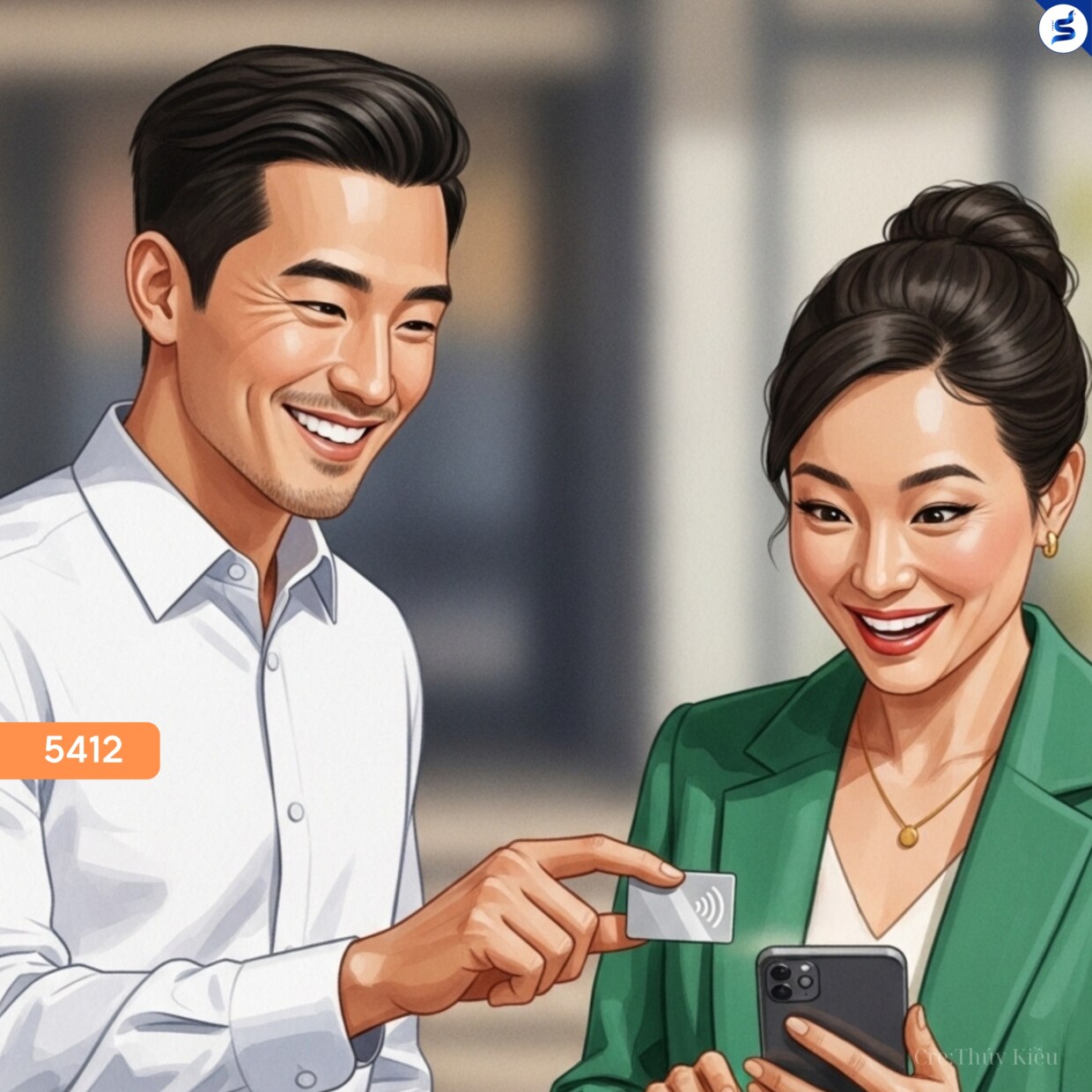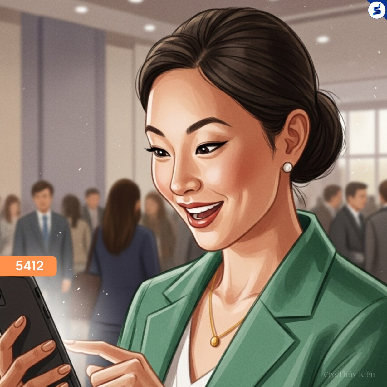 Tuyệt vời, chị Thảo, Minh nói. Tôi có một cách nhanh hơn nhiều. Anh mỉm cười rạng rỡ, rút chiếc thẻ danh thiếp điện tử ra và khẽ chạm vào mặt sau Anh quyết định hành động nhanh chóng và sáng tạo. chiếc điện thoại của chị Thảo.