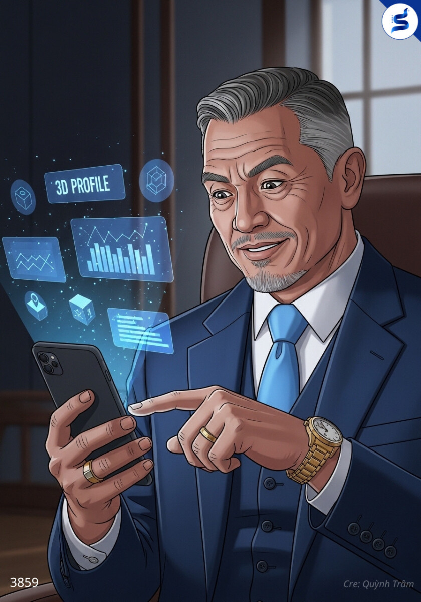 “Ông cho phép tôi?” – Lan mỉm cười, chạm thẻ vào điện thoại ông chủ. Ngay lập tức, màn hình sáng rực: profile cá nhân hóa, dữ liệu sản phẩm 3D bay lượn, tất cả chỉ trong 3 giây. Ông chủ tròn mắt ngạc nhiên.